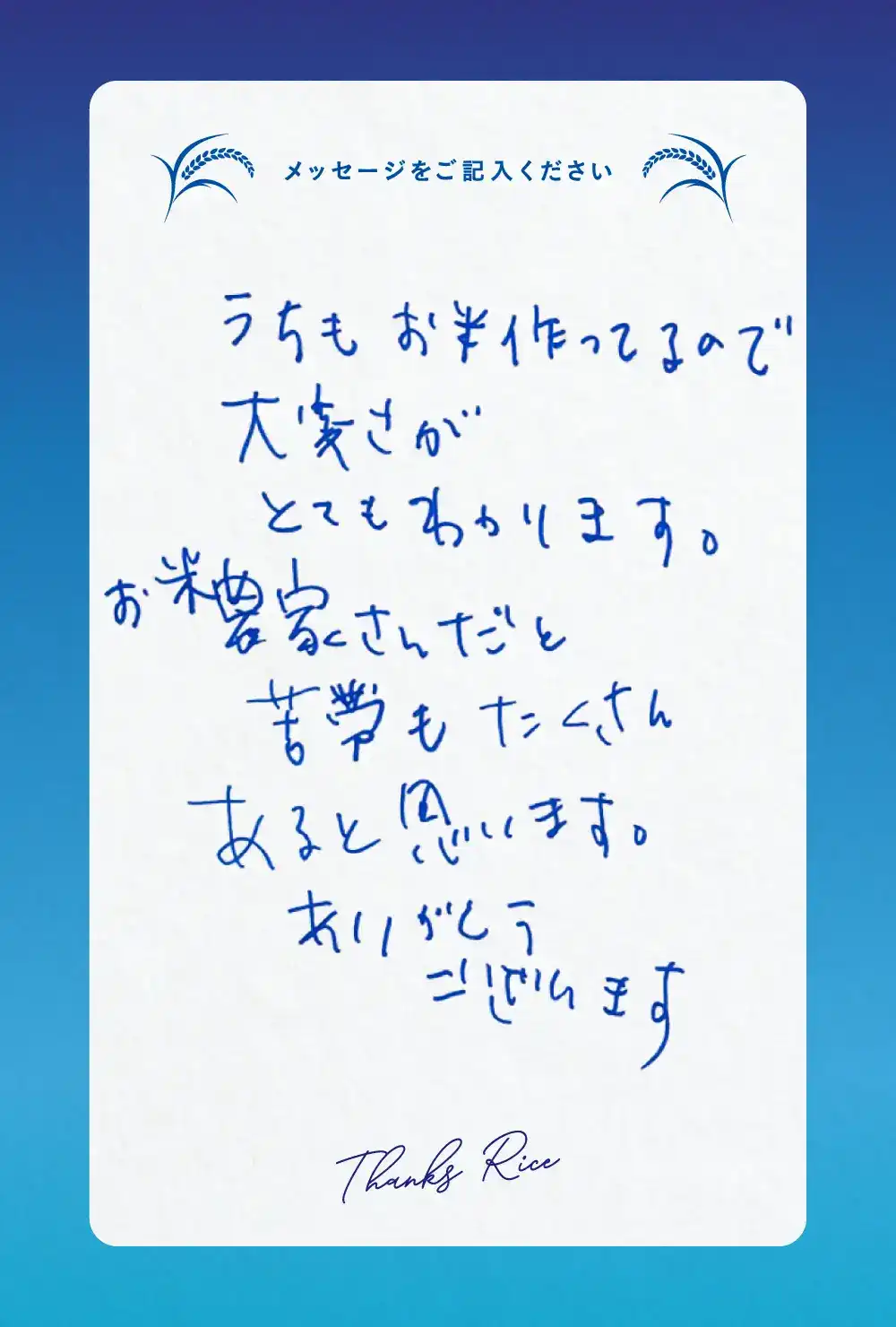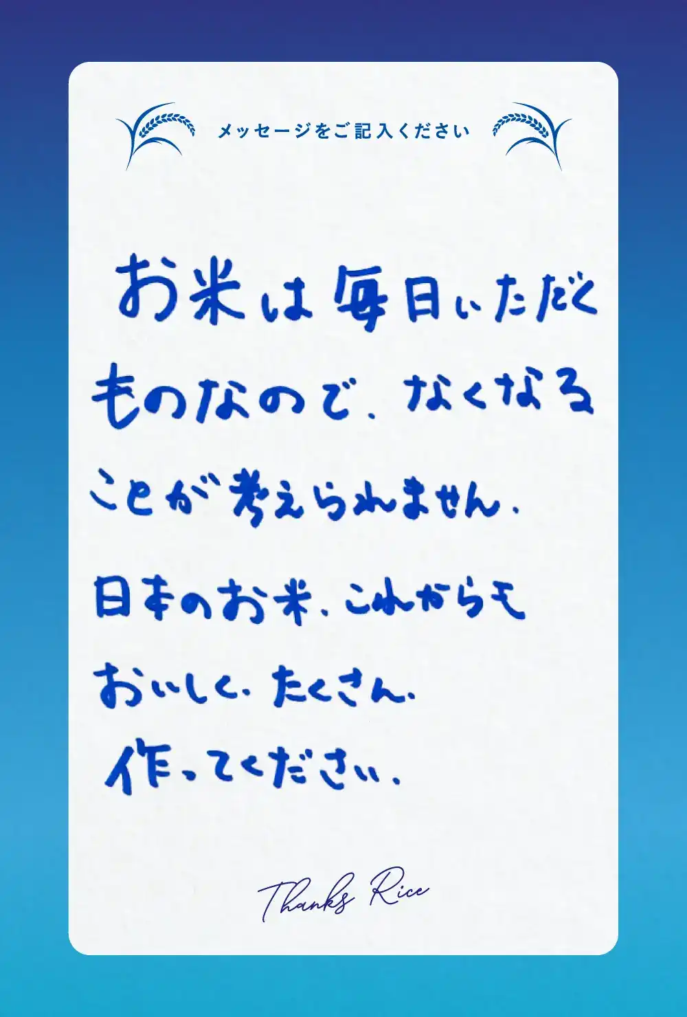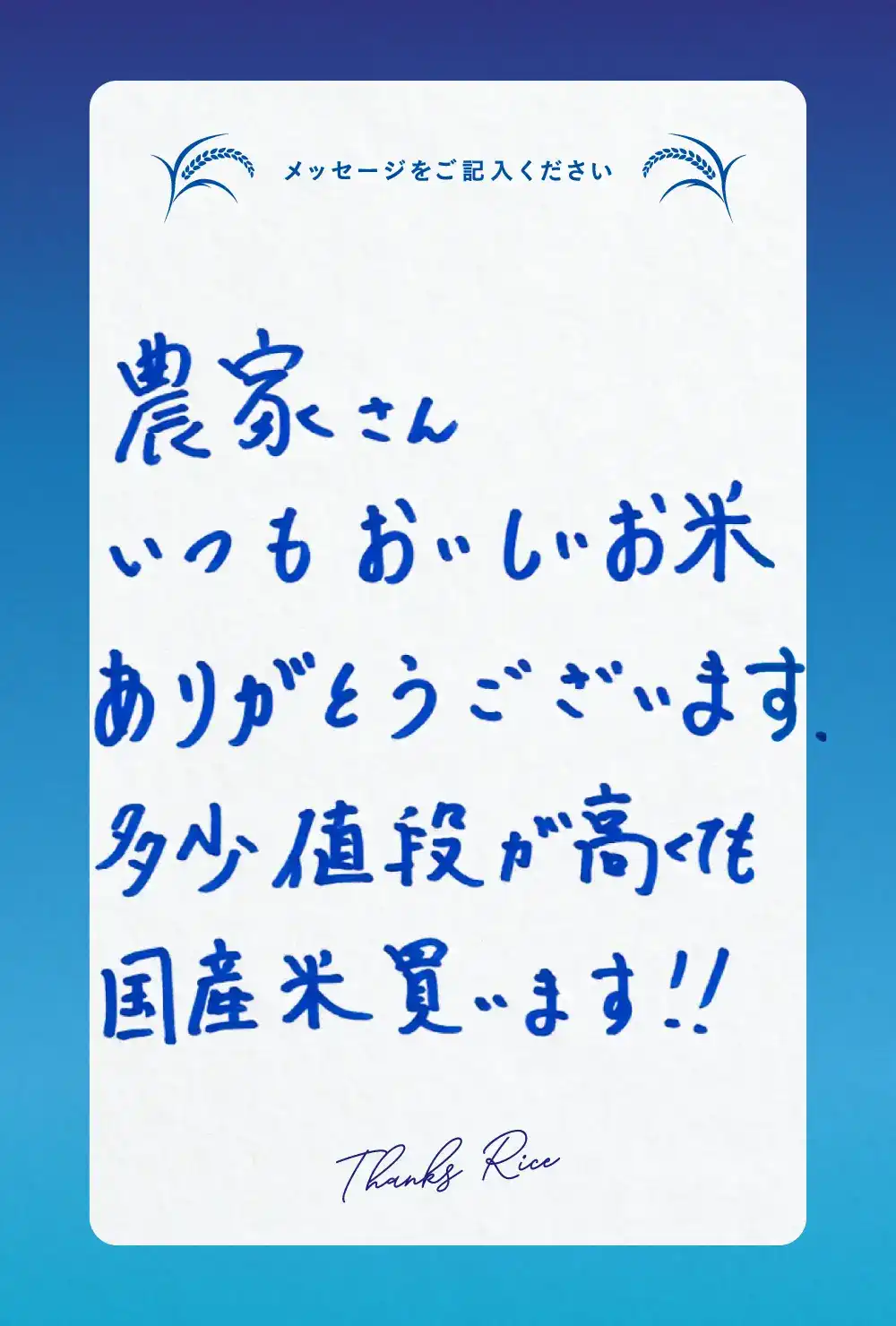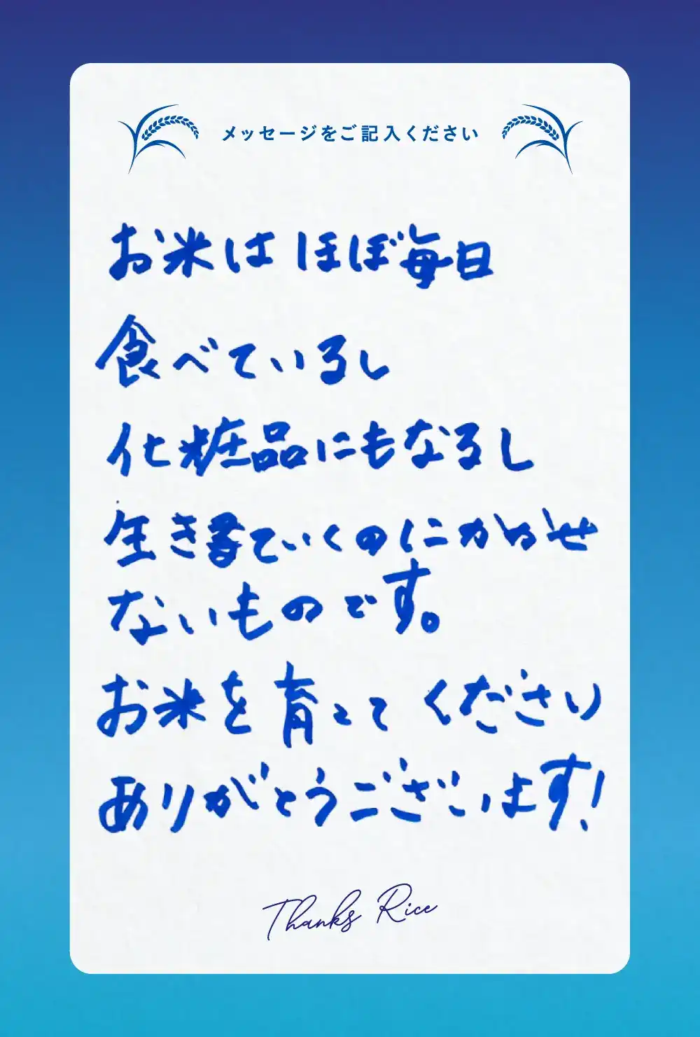 ご来場いただいた皆様からお米農家さんへ、