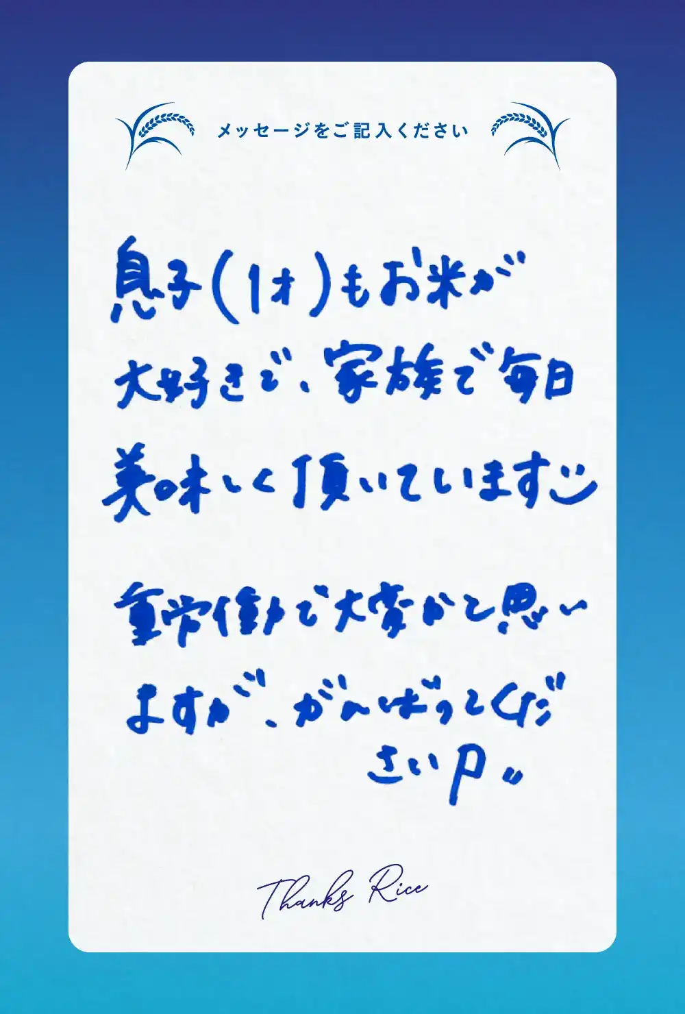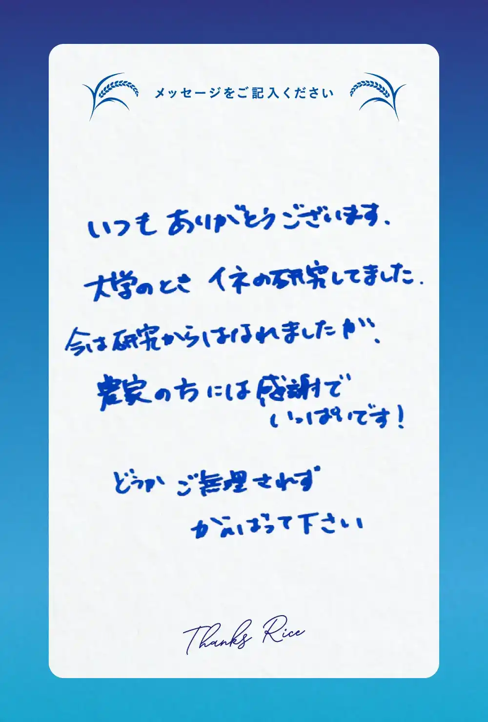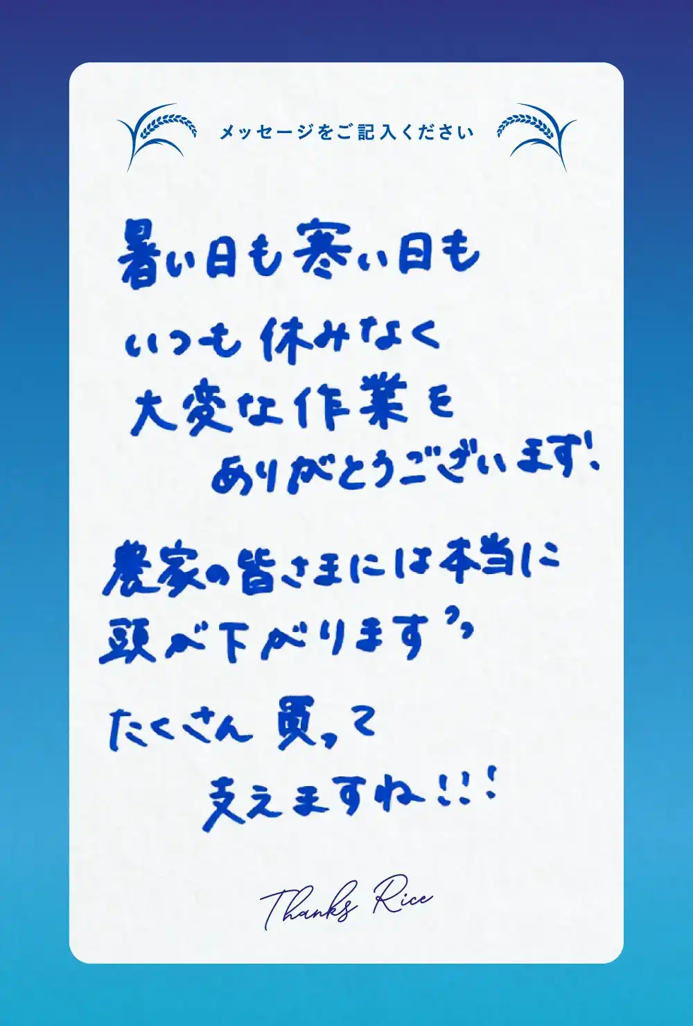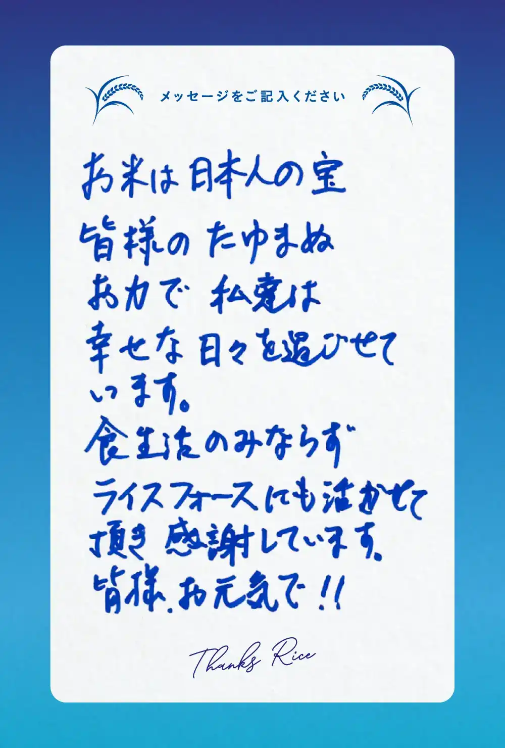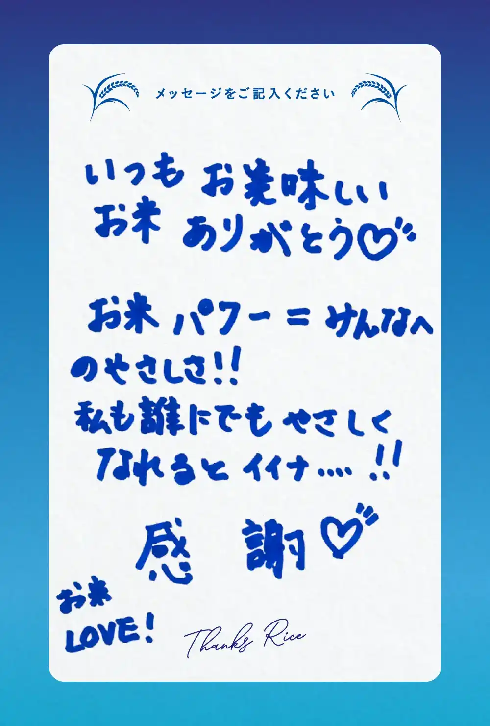 ご来場いただいた皆様からお米農家さんへ、