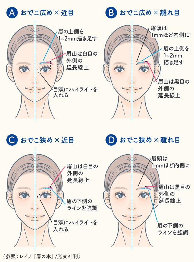 眉はいわば「顔の額縁」。顔立ちに合わせて描き方を微調整することで、顔全体の印象をアップさせ、生き生きとした個性や魅力を引き出せるようになります。自分の顔がどのタイプに近いのか、さっそくチェック!