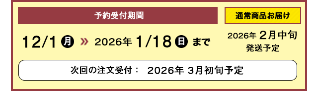 - ■予約受付期間:2025/12/1(月)~2026/1/18(日)