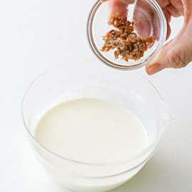 4生クリームと③を混ぜ、黒こしょうも加える。味を見て塩を加えて調整。