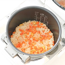 一般的に、ピラフを作る場合は生米を洗わずに使用することが多いですが、これは炊き上がりがベチャつかず美味しく仕上げるためなので、洗わずに使用するのがおすすめです。炊飯器以外に、土鍋や琺瑯鍋でも炊き込みOK。今回は発酵うまみだしを使って和風に仕上げましたが、コンソメスープで王道のピラフにしても相性の良い食材なので、アレンジも楽しんでみてください。